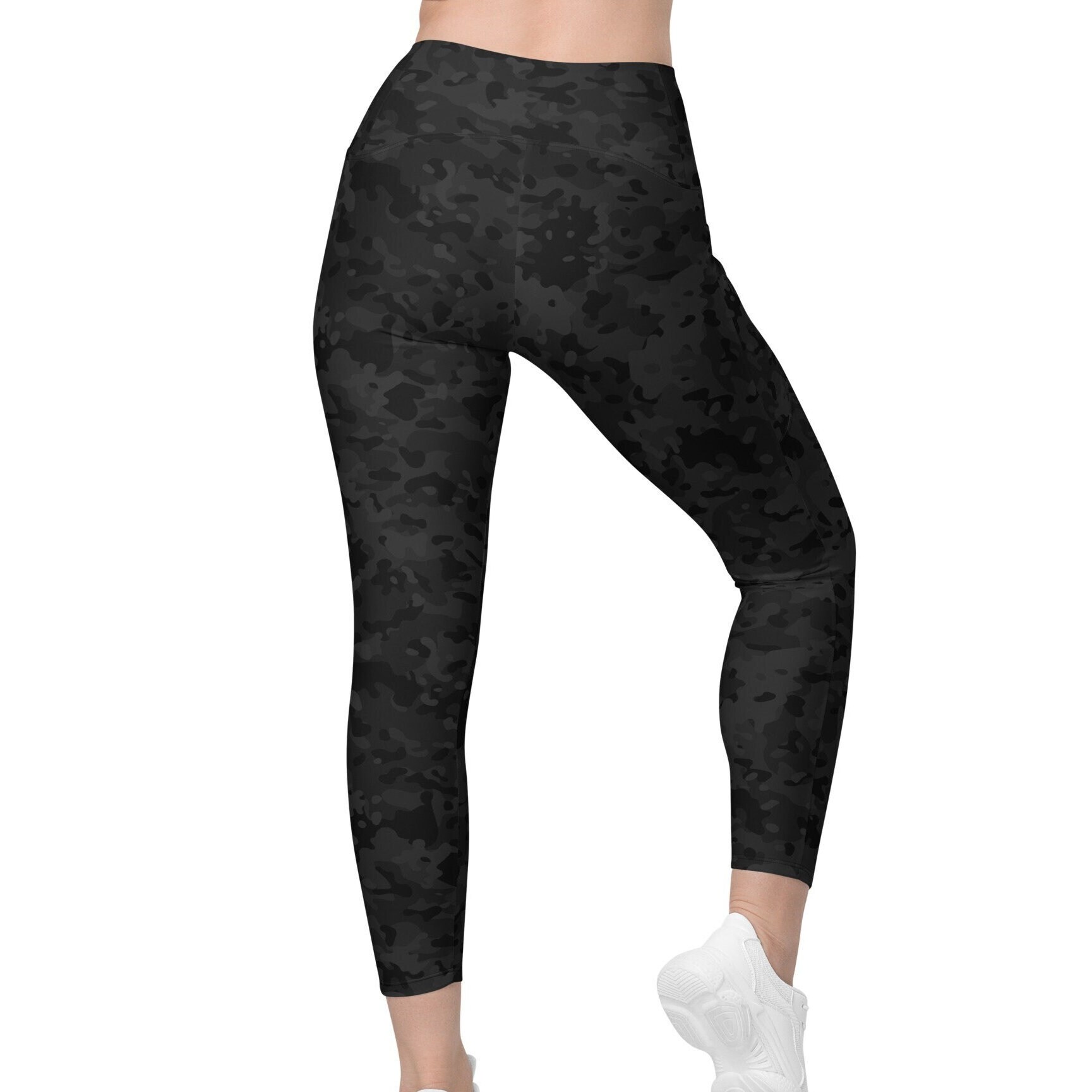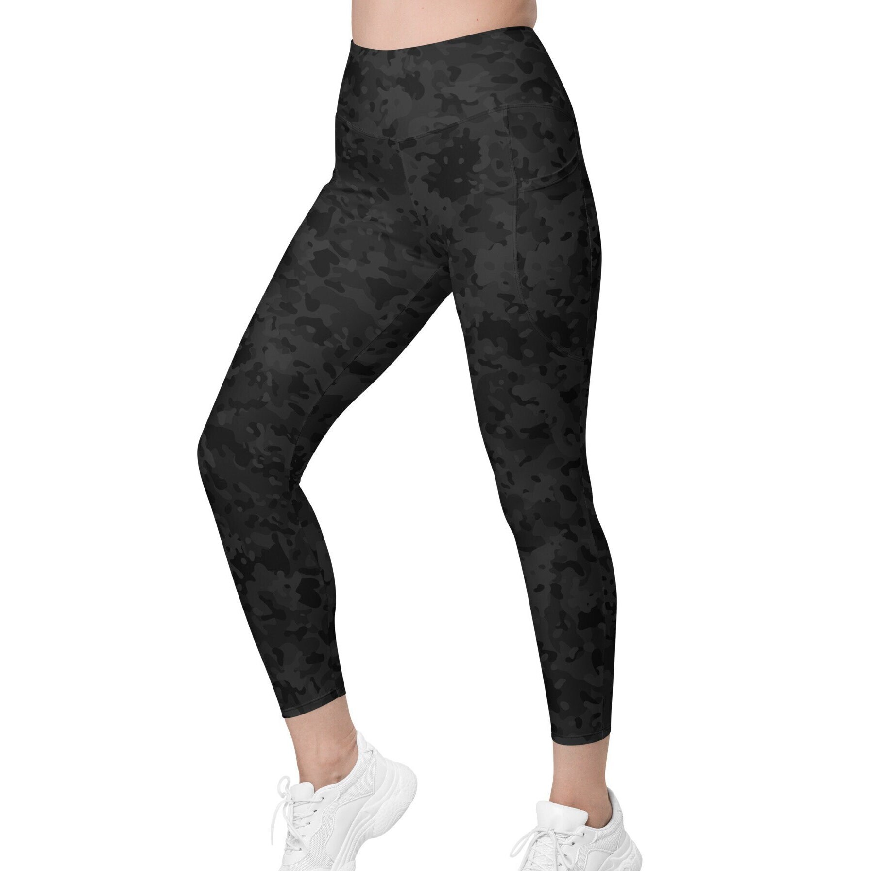 Embrace comfort, style, and performance with our Black Camo Leggings. These Women’s Yoga leggings harmoniously blend style and practicality. Relish unrestricted comfort whether you’re engaged in workouts, yoga, or leisurely pursuits. High Resolution imagery is printed directly to the fabric when you order, then we cut them and our sew them making a Unique and Beautiful Leggings with vibrant colors and a soft touch – these skinny fit leggings are perfect for any Workout, Yoga or casual occasion.